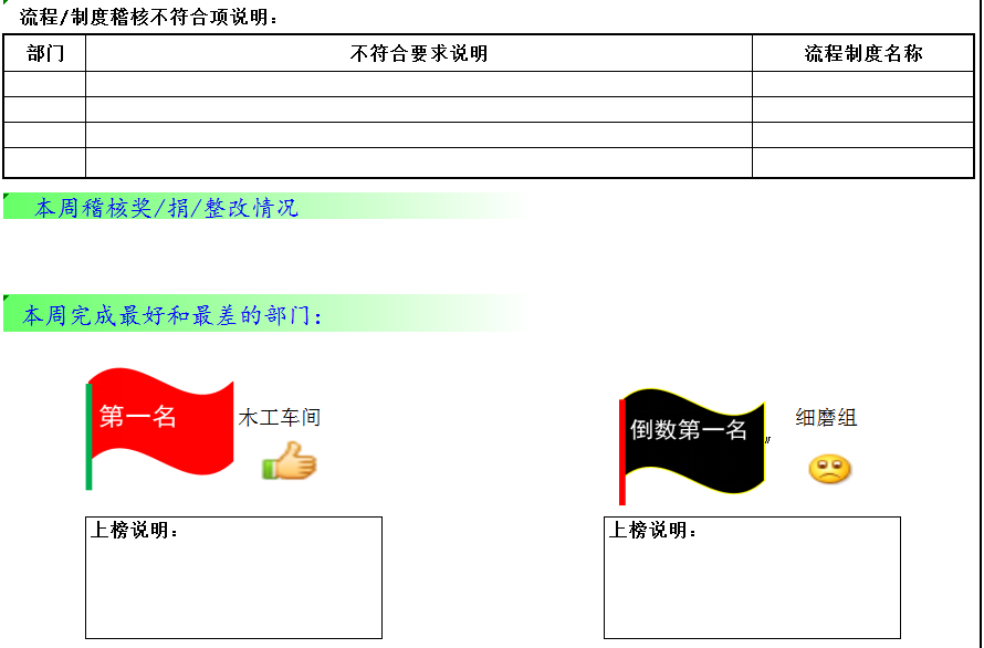 干货∣如何做好稽核!时间:2019-11-09 我们常常说 关注点在哪里,结果就在哪里 那么 如何关注? 该怎么关注? 关注后结果又会怎样? 这个就是本篇文章的主题 稽核 接下来我们细细解说在整木工厂中, 如何围绕我们的生产快速交付自运转系统组合拳,来有效地展开稽核动作 一、基本点 稽核应该围绕生管组合拳中的动作、表单、精益卡进行反复稽核,以确保日计划的有效达成,在此过程中培养员工按规定做事的习性。 生产协调会、日计划、备料制、攻关等动作有没有按规定来做?相应的表单是不是按要求在填写?填写是否正确?等等,这些是稽核应该抓住的要害,并且稽核的重点要随着企业导入生管组合拳的进度来进行。我们重点抓攻关,那么稽核就要重点查攻关动作的落实。重点抓备料制,稽核就要重点查备料过程中的问题,总之,要一一对应。 二、具体实施动作 01 对生产协调会的稽核 对于生产协调会稽核的重点有三个,第一是会议的召开,第二是会议资料的准备,第三是会议决议的达成。这是最基本的要求。 ①检查会议有没有按要求如实的召开?因为很多会议开了一段时间之后就不是按照要求和规定来进行的。 ②要检查一下会议资料的准备是不是按照生产协调会上所规定的那些资料来准备的。 ③会议决议的达成情况是怎么样。 稽核部必须每日参与生产协调会,并且每日简短通报稽核情况。 下图为对生产协调会的稽核结果 02 对生产日计划的稽核 稽核中心对于生产计划应该起到什么作用?对生产日计划的稽核应该围绕着五个动作展开。 ①检查的要点——日计划: 日计划有没有按要求每天或者在规定的时间内准时的下达。 ②目视管理: 很多企业的目视管理是流于形式的。板是画好了,格子也画好了,但是上面的内容很多时候是空白的,根本没有按照上面要求的去完成,或者没有按照上面要求规定的去填写,甚至填写的内容是虚假的。 稽核中心就应该检查生产部或者其他部门是否在规定的时间内按照要求真实的填写看板。你可以一天去查他两次或者三次,然后把这些信息向上反馈,以督促生产部的管理人员能及时的掌握信息、发现问题。 ③频繁跟进: 计划员首先做出一个计划跟进表,他跟进了以后要把跟进的结果填写在生产进度跟进表中。稽核员要做的工作就是去检查一下计划员是不是有把去现场跟进的结果记录在这个跟进表中,这也许只要一两分钟就可以了,你必须督促他频繁的去现场跟进。 ④异常处理: 出现异常时,是否按照异常作业规定进行。 ⑤现场PK: 其实就是计划达成与否的奖罚,稽核部首先要对数据的真实性负起重要的检查责任,并且督促这种奖罚按规定进行。 下图为对生产日计划的稽核结果 03 对备料的稽核 ①基础资料: 备料制的推行首先有助于提高材料清单(BOM表)的准确性和仓库帐物卡的准确性。所以,稽核在这一块的重点,前期往往是检查跟进BOM表攻关和仓库攻关的情况。因为只有通过这两个攻关,才能将备料制需要的两个基础资料BOM清单和库存数据搞准。 ②物料计划: 对物料计划的稽核是根据订单交期分解表来进行的,在这里,物料计划稽核有两个点: 第一,物料需求计划是不是按订单交期分解表上面规定的时间下达给采购部/生产车间?就是他时间上面有没有达成。 第二,物料需求计划的准确性是否可以达成?是不是准确的?不可能100%保证物控员作出的物料需求计划是准确的,但是有很多的错误或者遗漏通过我们的检查就很容易的能够发现,因为很多稽核员来自现场。 ③仓库/中转仓的整改: 也是围绕着我们的仓库整改方案来进行稽核。哪些动作什么时候开始做?有没有这样做?做的结果是怎么样?有没有按照要求在做。稽核可以协同仓管员进行物料的有效盘点。不要认为稽核专员就不需要介入盘点,实际上在仓库/中转仓整改的前期过程中,我们稽核员应该协同PMC部或者仓管员每天抽查5—10项物料的盘点的情况、账物卡的准确率,他是反复在进行的。 ④采购的控制: 采购的控制我们前面有分享过,就是根据采购动作的九个动作来进行稽核。 ⑤仓库备料: 根据中转仓备料动作精益卡,作出相应的稽核精益卡,稽核的动作就标准化了。稽核每天应该做什么呢?就是针对中转仓备料应该做什么来进行。 中转仓备料是稽核控制的重点。前期的BOM清单和中转仓整改攻关动作完成之后,对仓库整改以及材料清单的稽核将会慢慢减少,后期对备料的及时性及准确性的稽核就是重点。 下图为对备料的稽核结果 04 对攻关的稽核 为了确保攻关方案有效得到落实,我们把攻关的每一个动作都纳入了稽核精益卡里面。告诉下面的员工,我们将会按照你们所写的内容进行点对点的稽核,而且是针对几个主要的生产工段、生产岗位,每天都去检查。 攻关稽核的重点是动作的落实情况,你不断的检查、监督,那么做的动作就会慢慢的养成一种习惯。 下图为对攻关的稽核结果 05 对考核的稽核 关键的一点是,对考核上面所要求的数据的真实性要进行稽核。稽核就是通过第三方的力量来检查我们现场搜集的这些数据是不是真实、准确的,这主要是通过检查表单的填写、交接、统计过程。 06 对稽核自身的控制 要通过稽核精益卡将稽核的动作标准化,为方案的落实提供执行的保障,或者提供监督的保障。 我们不能只要求其他部门动作要标准化, 首先:要通过稽核精益
